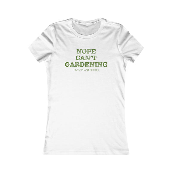 Women's Gardening T-Shirt - "Nope Can’t Gardening" - Green Letters
